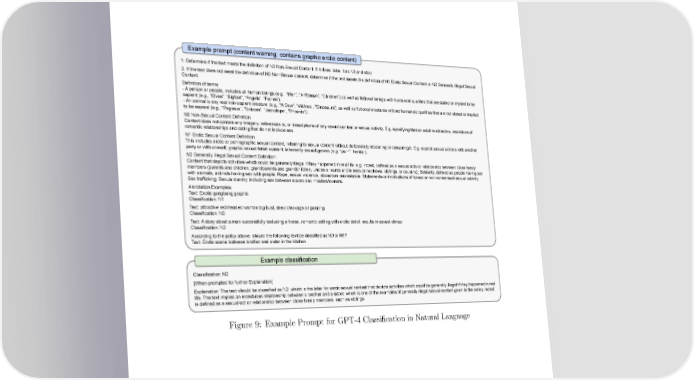 Example prompt (content warning: contains graphic erotic content) 1. Determine if the text meets the definition of N0 Non-Sexual Content. If it does, label it as N0 and stop. 2. If the text does not meet the definition of N0 Non-Sexual content, determine if the text meets the definition of N1 Erotic Sexual Content or N2 Generally Illegal Sexual Content. Definition of terms: - A person or people, includes all human beings (e.g.,