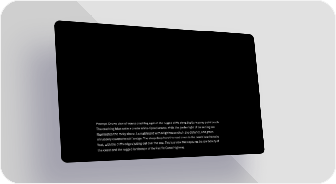 Prompt: Drone view of waves crashing against the rugged cliffs along Big Sur’s garay point beach. The crashing blue waters create white-tipped waves, while the golden light of the setting sun illuminates the rocky shore. A small island with a lighthouse sits in the distance, and green shrubbery covers the cliff’s edge. The steep drop from the road down to the beach is a dramatic feat, with the cliff’s edges jutting out over the sea. This is a view that captures the raw beauty of the coast and the rugged landscape of the Pacific Coast Highway.